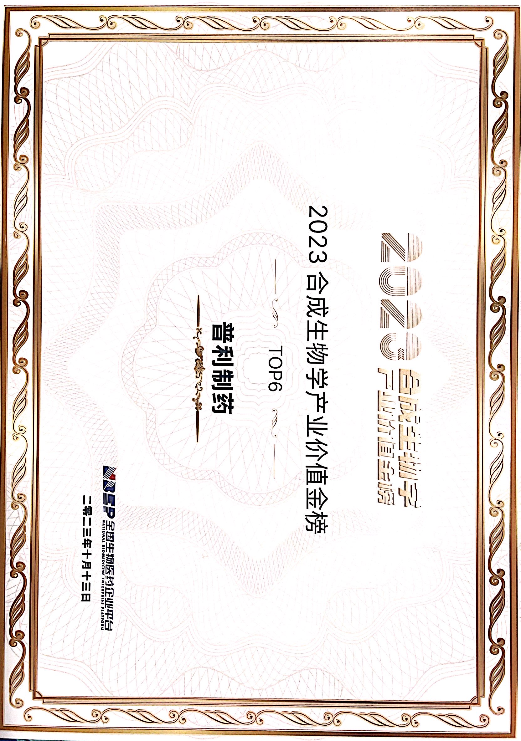 2.普利制药荣登2023年度合成生物学产业价值金榜“TOP6”!